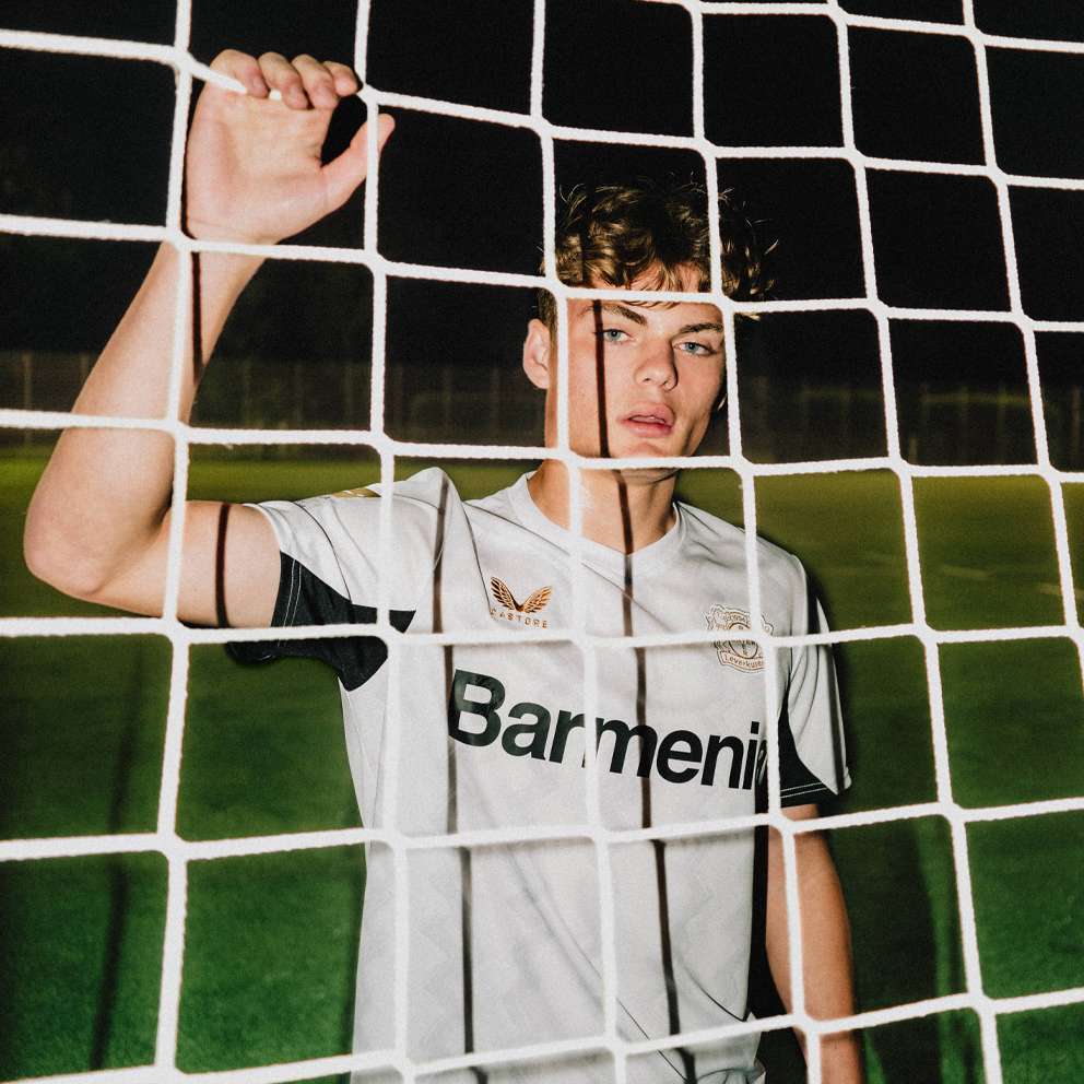 Aufbruch unterm Kreuz. Immer dabei. Ob nah oder weit. Das Auswärtstrikot der Werkself.