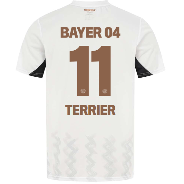 – Ein Auswärtstrikot mit einem Flock der Bayer 04-Frauen wird nicht mit dem goldenen Meisterbadge und dem Partnerbadge „Niedax“ veredelt, sondern mit den Partnern der Bayer 04-Frauen. Die Ärmel werden mit dem Logo der Frauen-Bundesliga und dem Ärmelpartner „S2“ veredelt. Auf dem Rücken, unterhalb der Rückennummer, wird der Partner „früh“ bedruckt.
