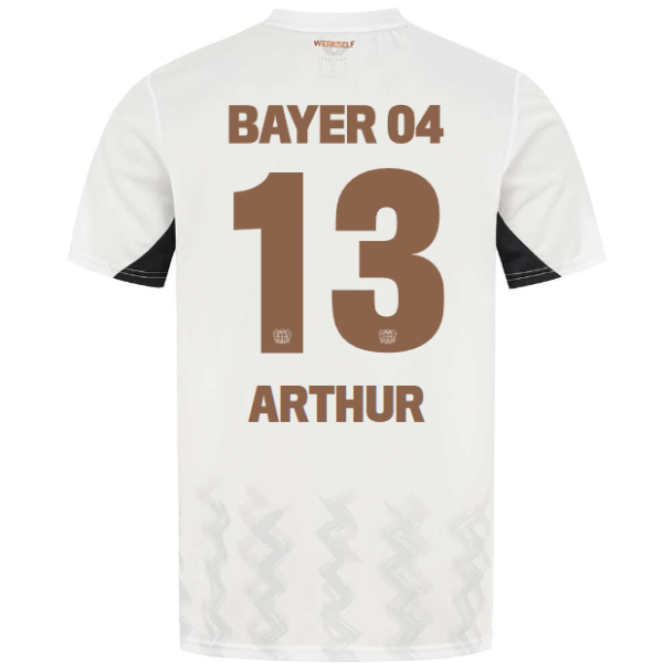 Die Highlights sind das in kupfer gefärbte Bayer 04 Logo auf der linken Brust, das in kupfer gefärbte und gestickte Ausrüster-Logo der britischen Premium-Marke Castore auf der rechten Brust sowie die optional auswählbare Rückenbeflockung in einem glänzenden Kupfer-Ton. Der Nacken wird durch einen kupferfarbenden „Werkself“-Schriftzug geziert. Auf der Brust ist der Hauptsponsor Barmenia in schwarzer Schrift abgebildet.