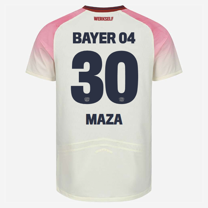 Das Bayer 04-Logo sowie das Logo unseres neuen Ausrüsters New Balance stechen in einer purpurrot bedruckten Optik auf der Brust heraus, während unser Brustsponsor BarmeniaGothaer in dunkelblauer Schrift hervortritt. Der Nacken wird durch einen roten „Werkself“-Schriftzug geziert, der die Verbundenheit zur Mannschaft unterstreicht.