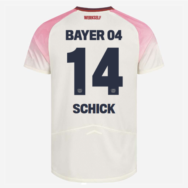 Das Bayer 04-Logo sowie das Logo unseres neuen Ausrüsters New Balance stechen in einer purpurrot gestickten Optik auf der Brust heraus, während unser Brustsponsor BarmeniaGothaer in dunkelblauer Schrift hervortritt. Der Nacken wird durch einen roten „Werkself“-Schriftzug geziert, der die Verbundenheit zur Mannschaft unterstreicht.