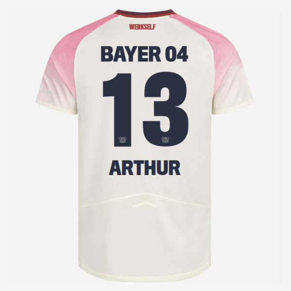 Das Bayer 04-Logo sowie das Logo unseres neuen Ausrüsters New Balance stechen in einer purpurrot gestickten Optik auf der Brust heraus, während unser Brustsponsor BarmeniaGothaer in dunkelblauer Schrift hervortritt. Der Nacken wird durch einen roten „Werkself“-Schriftzug geziert, der die Verbundenheit zur Mannschaft unterstreicht.