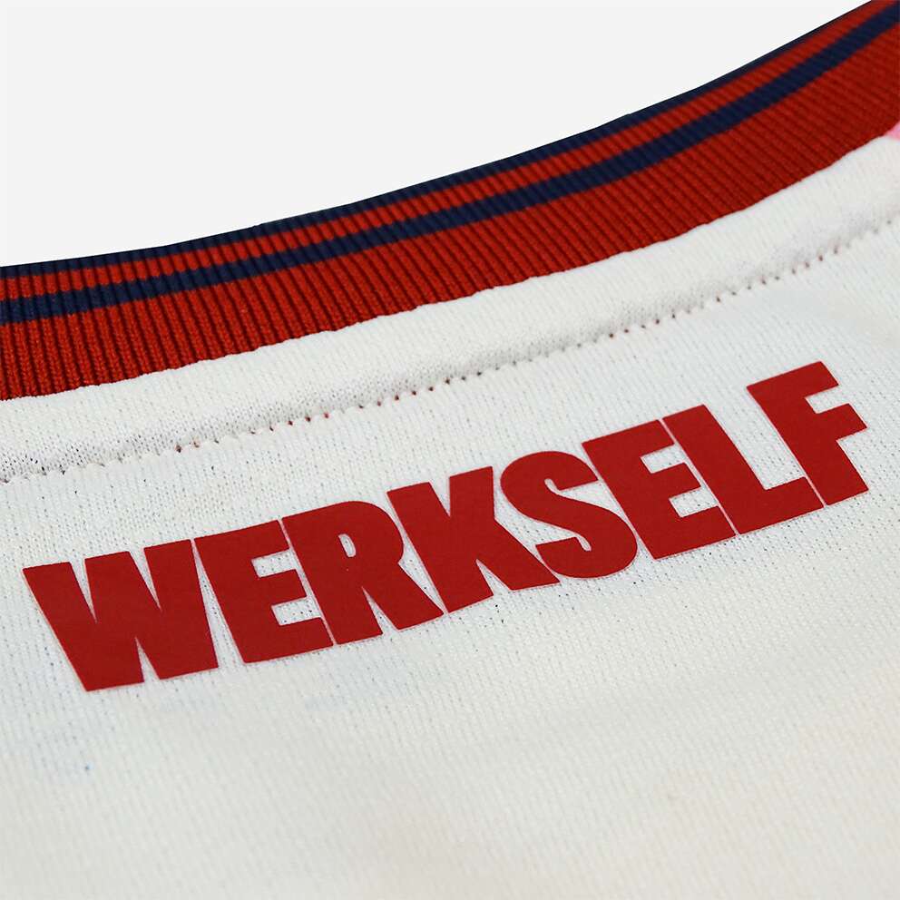 Das Bayer 04-Logo sowie das Logo unseres neuen Ausrüsters New Balance stechen in einer purpurrot gestickten Optik auf der Brust heraus, während unser Brustsponsor BarmeniaGothaer in dunkelblauer Schrift hervortritt. Der Nacken wird durch einen roten „Werkself“-Schriftzug geziert, der die Verbundenheit zur Mannschaft unterstreicht.