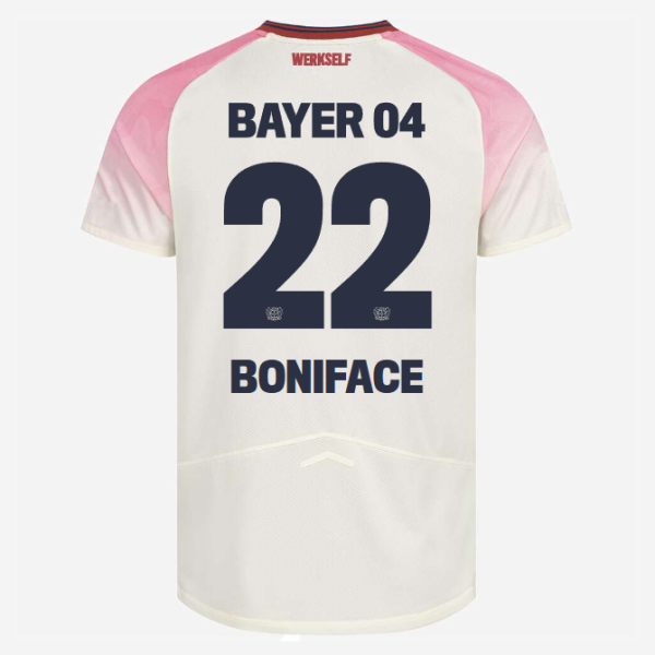 Das Bayer 04-Logo sowie das Logo unseres neuen Ausrüsters New Balance stechen in einer purpurrot gestickten Optik auf der Brust heraus, während unser Brustsponsor BarmeniaGothaer in dunkelblauer Schrift hervortritt. Der Nacken wird durch einen roten „Werkself“-Schriftzug geziert, der die Verbundenheit zur Mannschaft unterstreicht.