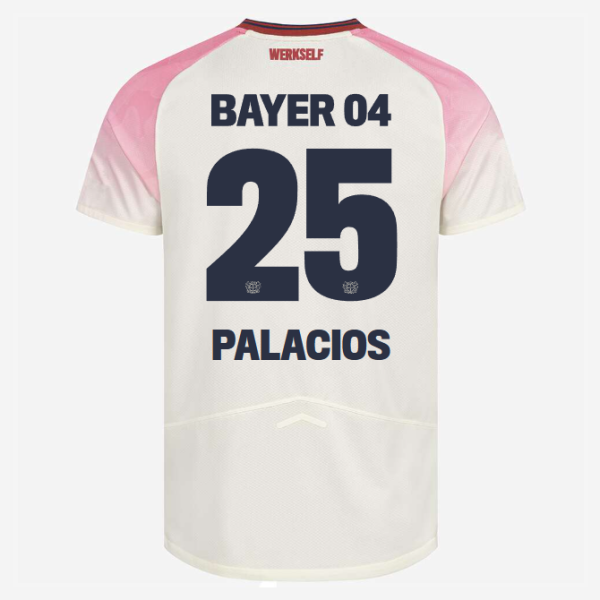 Das Bayer 04-Logo sowie das Logo unseres neuen Ausrüsters New Balance stechen in einer purpurrot gestickten Optik auf der Brust heraus, während unser Brustsponsor BarmeniaGothaer in dunkelblauer Schrift hervortritt. Der Nacken wird durch einen roten „Werkself“-Schriftzug geziert, der die Verbundenheit zur Mannschaft unterstreicht.