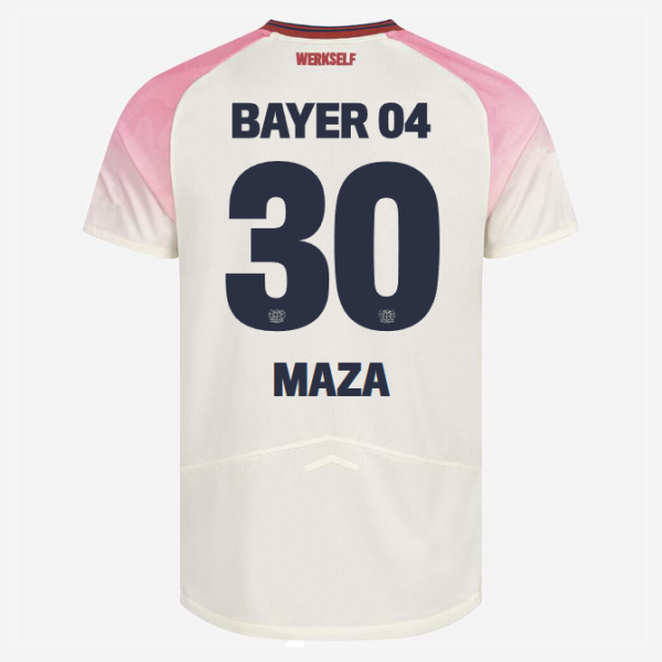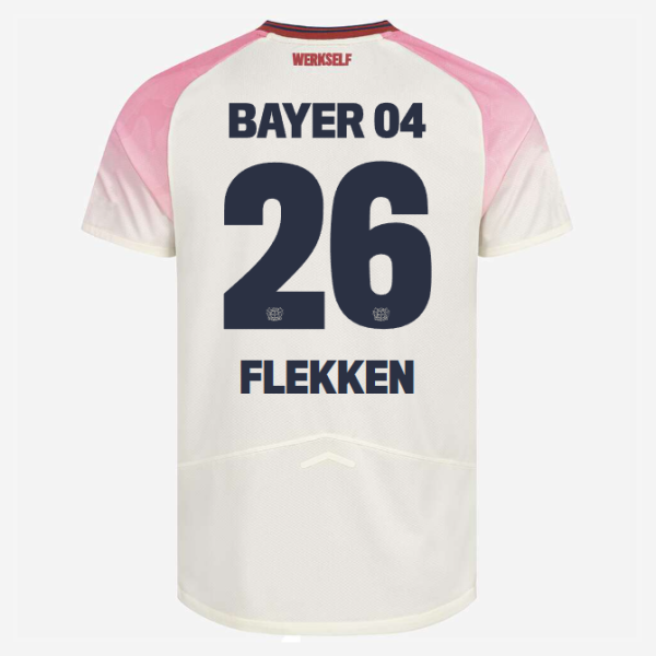 Das Bayer 04-Logo sowie das Logo unseres neuen Ausrüsters New Balance stechen in einer purpurrot gestickten Optik auf der Brust heraus, während unser Brustsponsor BarmeniaGothaer in dunkelblauer Schrift hervortritt. Der Nacken wird durch einen roten „Werkself“-Schriftzug geziert, der die Verbundenheit zur Mannschaft unterstreicht.