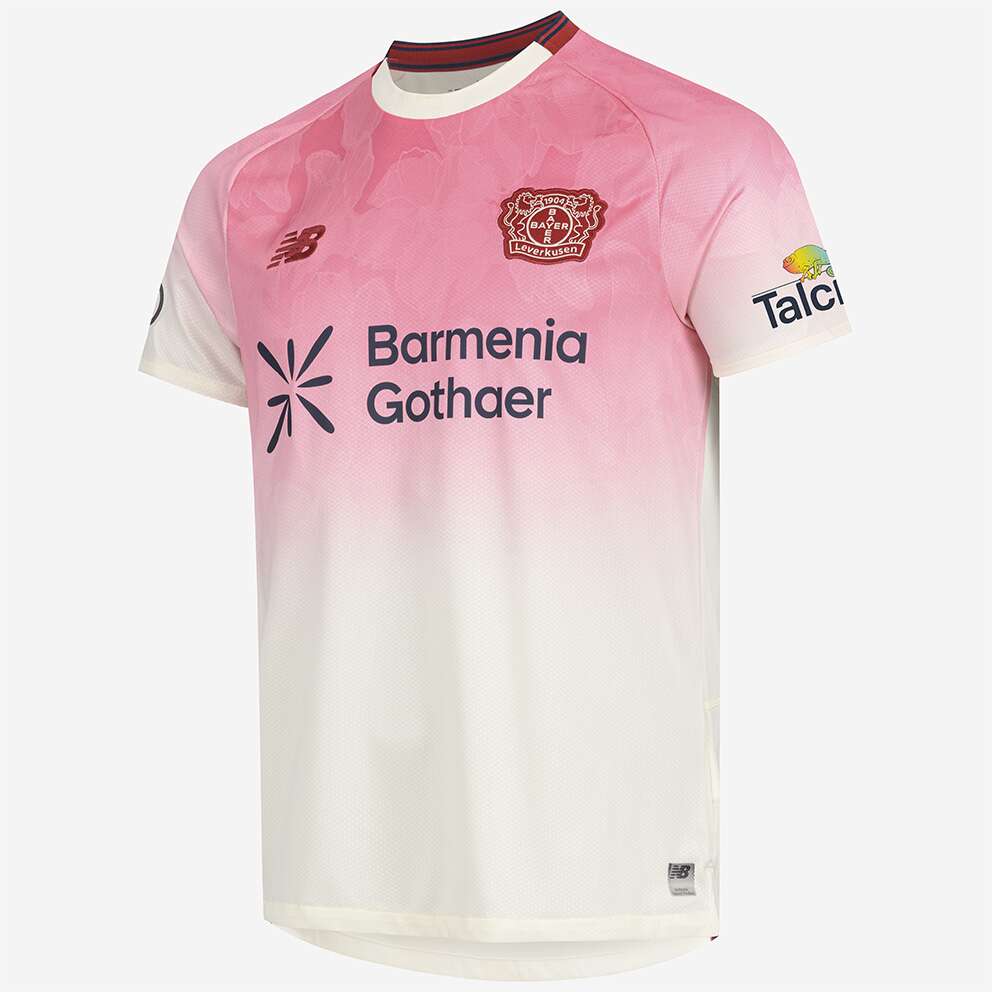 Das Bayer 04-Logo sowie das Logo unseres neuen Ausrüsters New Balance stechen in einer purpurrot gestickten Optik auf der Brust heraus, während unser Brustsponsor BarmeniaGothaer in dunkelblauer Schrift hervortritt. Der Nacken wird durch einen roten „Werkself“-Schriftzug geziert, der die Verbundenheit zur Mannschaft unterstreicht.