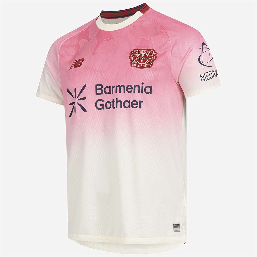 Das Bayer 04-Logo sowie das Logo unseres neuen Ausrüsters New Balance stechen in einer purpurrot gestickten Optik auf der Brust heraus, während unser Brustsponsor BarmeniaGothaer in dunkelblauer Schrift hervortritt. Der Nacken wird durch einen roten „Werkself“-Schriftzug geziert, der die Verbundenheit zur Mannschaft unterstreicht.