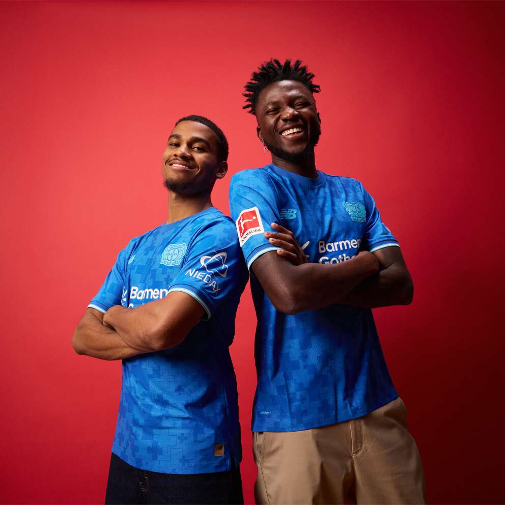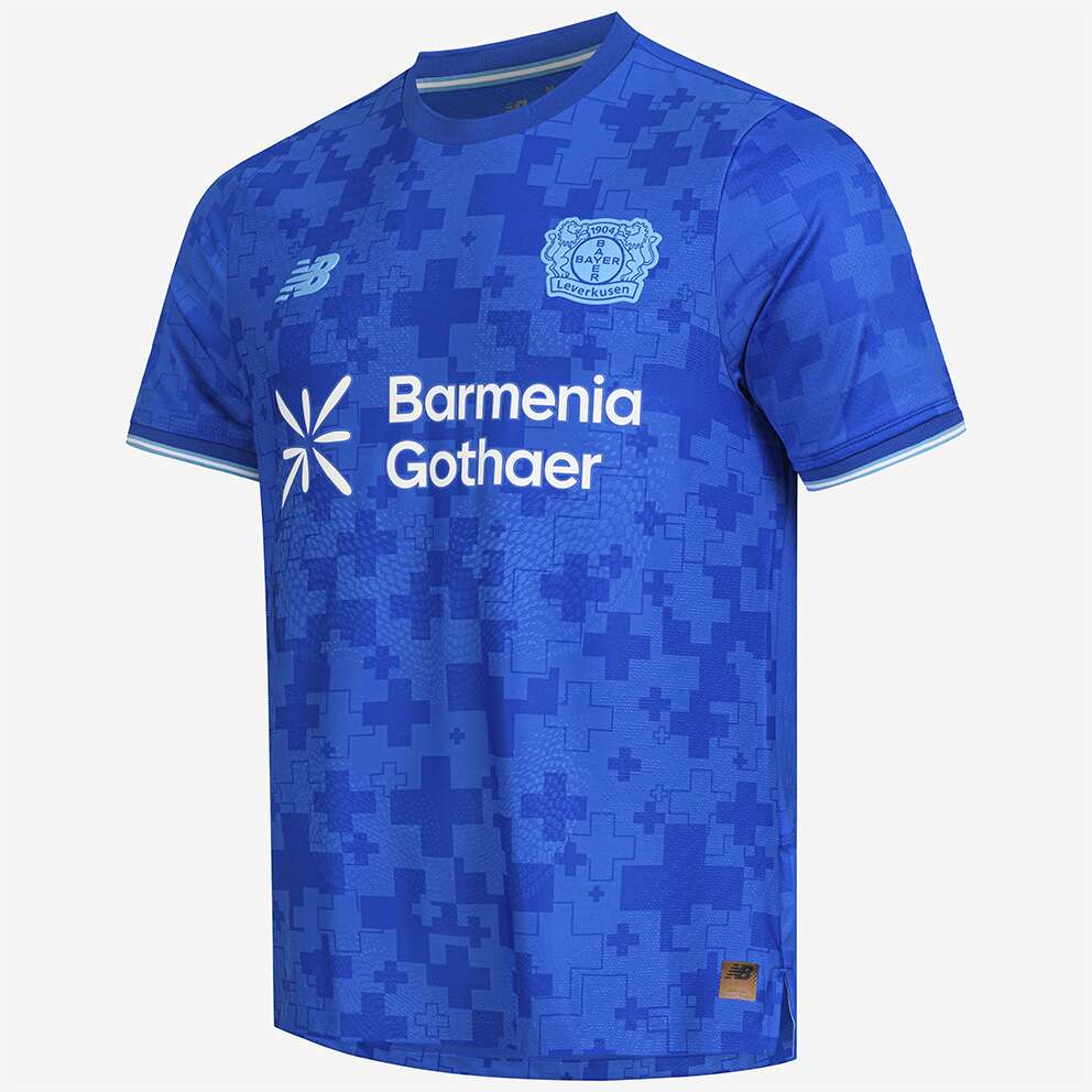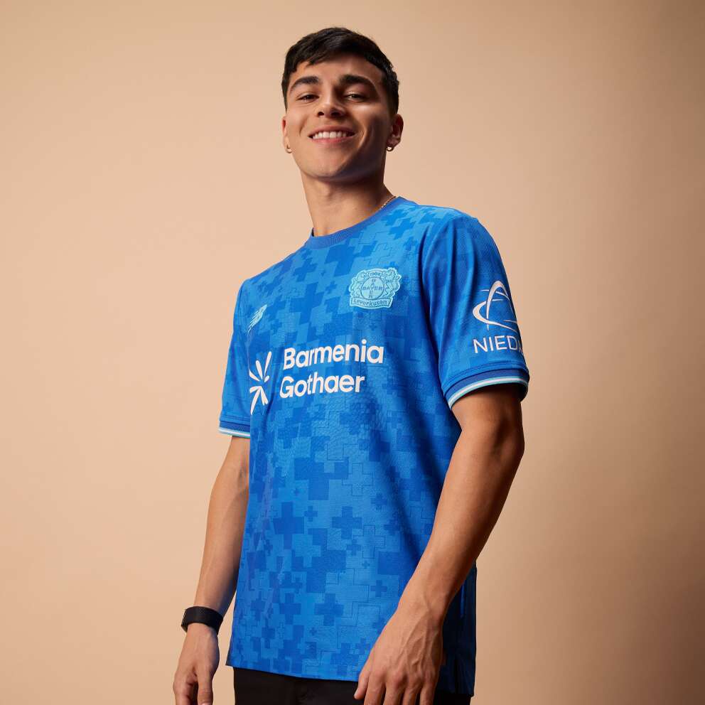 Das Design des Ausweichtrikots 25/26 spiegelt in einem ausdrucksstarken Blau und Cyan die Identität Leverkusens, der„Farbenstadt“, auf stilvolle Weise wider. Im Mittelpunkt steht der vollflächige Grafikdruck aus sich überlappenden Kreuzen, der eine moderne Interpretation des ikonischen Bayer-Kreuzes bildet. Dieses Design vereint die über 120-jährige Geschichte des Klubs und der Stadt mit einem mutigen, zeitgemäßen Look.