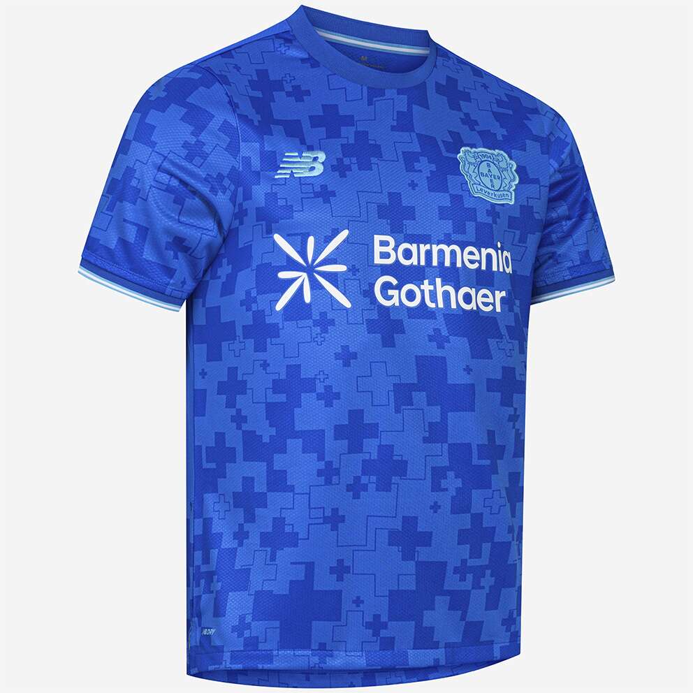 Das Design des Ausweichtrikots 25/26 spiegelt in einem ausdrucksstarken Blau und Cyan die Identität Leverkusens, der „Farbenstadt“, auf stilvolle Weise wider. Im Mittelpunkt steht der vollflächige Grafikdruck aus sich überlappenden Kreuzen, der eine moderne Interpretation des ikonischen Bayer-Kreuzes bildet. Dieses Design vereint die über 120-jährige Geschichte des Klubs und der Stadt mit einem mutigen, zeitgemäßen Look.
