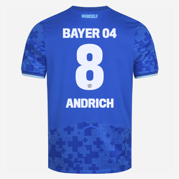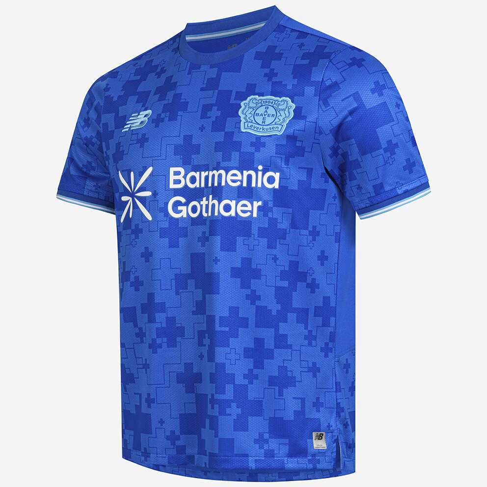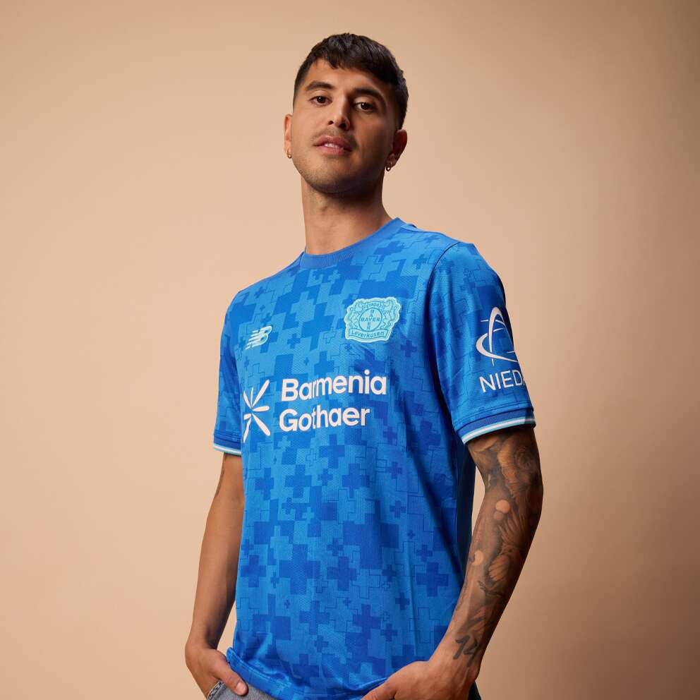 Das Design des Ausweichtrikots 25/26 spiegelt in einem ausdrucksstarken Blau und Cyan die Identität Leverkusens, der „Farbenstadt“, auf stilvolle Weise wider. Im Mittelpunkt steht der vollflächige Grafikdruck aus sich überlappenden Kreuzen, der eine moderne Interpretation des ikonischen Bayer-Kreuzes bildet. Dieses Design vereint die über 120-jährige Geschichte des Klubs und der Stadt mit einem mutigen, zeitgemäßen Look.