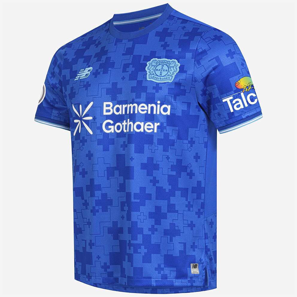Das Design des Ausweichtrikots 25/26 spiegelt in einem ausdrucksstarken Blau und Cyan die Identität Leverkusens, der „Farbenstadt“, auf stilvolle Weise wider. Im Mittelpunkt steht der vollflächige Grafikdruck aus sich überlappenden Kreuzen, der eine moderne Interpretation des ikonischen Bayer-Kreuzes bildet. Dieses Design vereint die über 120-jährige Geschichte des Klubs und der Stadt mit einem mutigen, zeitgemäßen Look.