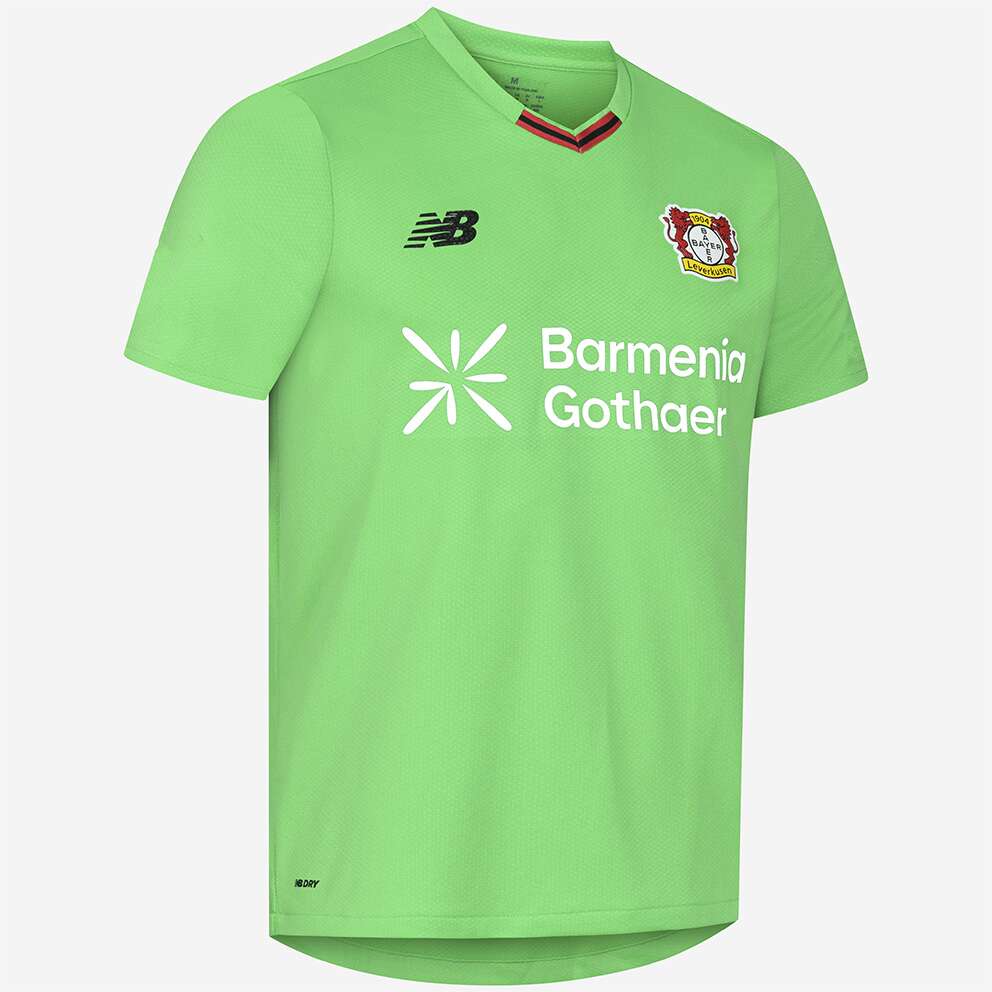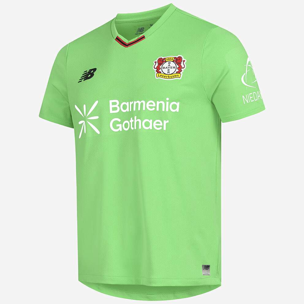 Das Bayer 04-Logo sowie das Logo unseres neuen Ausrüsters New Balance stechen in einer gestickten Optik auf der Brust heraus, während unser Brustsponsor BarmeniaGothaer in weißer Schrift hervortritt. Der Nacken wird durch einen schwarzen „Werkself“-Schriftzug geziert, der die Verbundenheit zur Mannschaft unterstreicht.