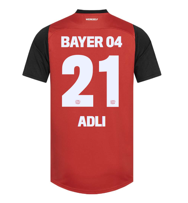 Das neue schwarz-rote Heimtrikot ist da und wird erstmals seit 120 Jahren mit dem goldenen Badge des deutschen Fußball-Meisters auf dem rechten Ärmel geprägt. Das Trikot wird von vielen verschiedenen Elementen der Stadt geziert: die Diamanten des Wasserturms, einem aus den Zacken des Stadtwappens zusammengesetzten Kreuz und die Stadtkarte von Leverkusen.
