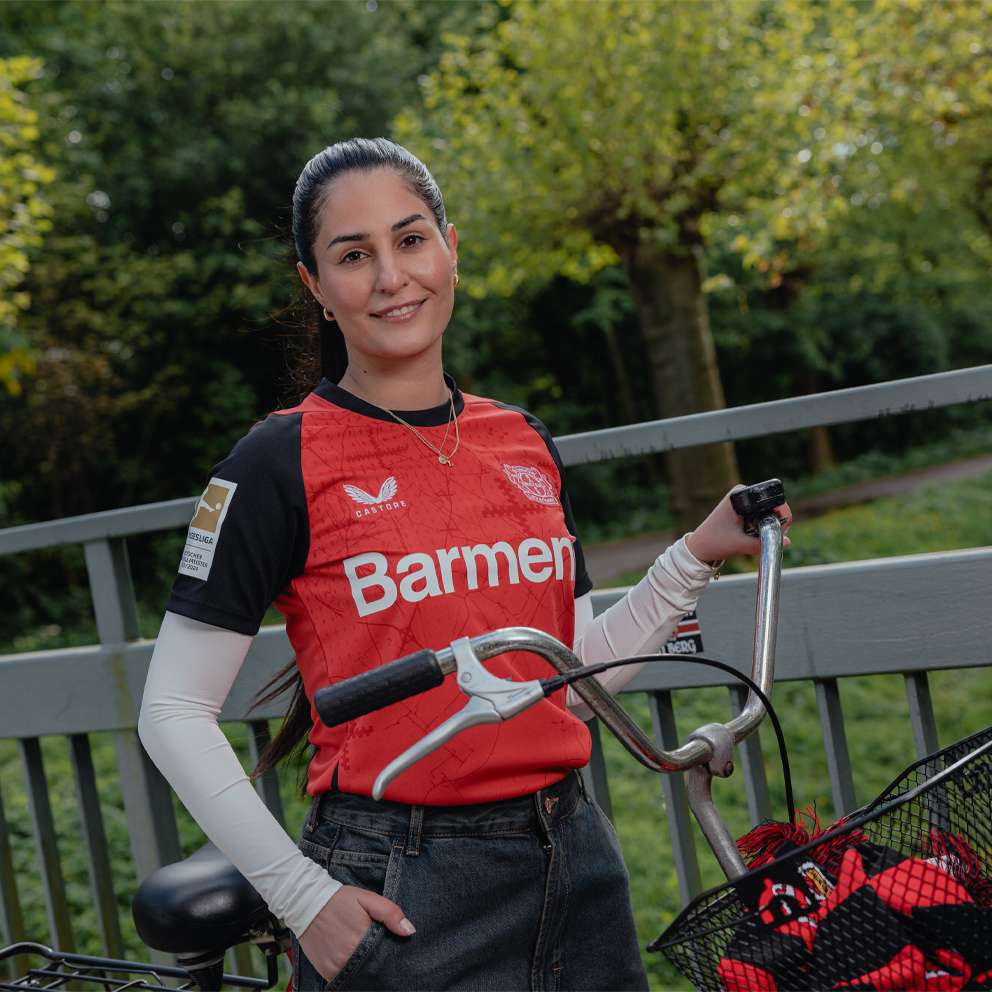 Das neue schwarz-rote Heimtrikot ist da und wird erstmals seit 120 Jahren mit dem goldenen Badge des deutschen Fußball-Meisters auf dem rechten Ärmel geprägt. Das Trikot wird von vielen verschiedenen Elementen der Stadt geziert: die Diamanten des Wasserturms, einem aus den Zacken des Stadtwappens zusammengesetzten Kreuz und die Stadtkarte von Leverkusen.