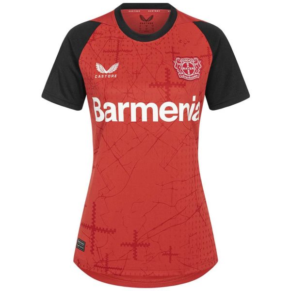 Das neue schwarz-rote Heimtrikot ist da und wird erstmals seit 120 Jahren mit dem goldenen Badge des deutschen Fußball-Meisters auf dem rechten Ärmel geprägt. Das Trikot wird von vielen verschiedenen Elementen der Stadt geziert: die Diamanten des Wasserturms, einem aus den Zacken des Stadtwappens zusammengesetzten Kreuz und die Stadtkarte von Leverkusen.