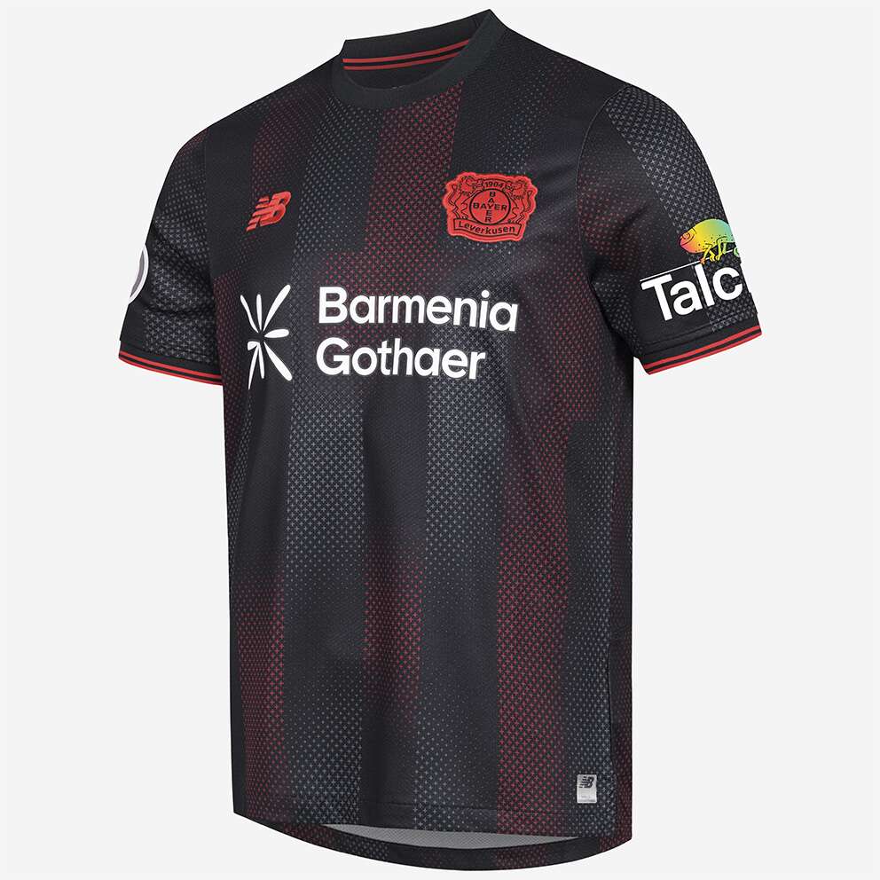 Das Bayer 04-Logo sowie das Logo unseres neuen Ausrüsters New Balance stechen in einer rot gestickten Optik auf der Brust heraus, während unser Brustsponsor BarmeniaGothaer in weißer Schrift hervortritt. Der Nacken wird durch einen roten „Werkself“-Schriftzug geziert, der die Verbundenheit zur Mannschaft unterstreicht.