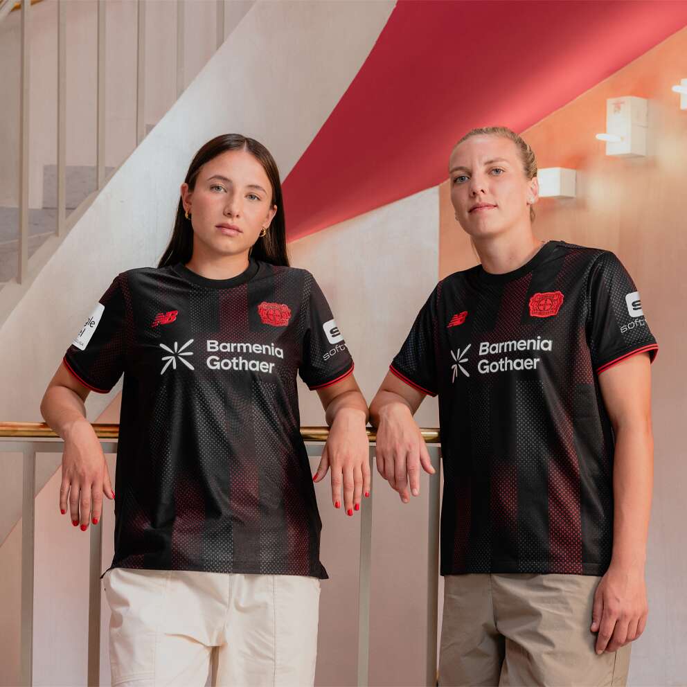 Das Bayer 04-Logo sowie das Logo unseres neuen Ausrüsters New Balance stechen in einer rot gestickten Optik auf der Brust heraus, während unser Brustsponsor BarmeniaGothaer in weißer Schrift hervortritt. Der Nacken wird durch einen roten „Werkself“-Schriftzug geziert, der die Verbundenheit zur Mannschaft unterstreicht.