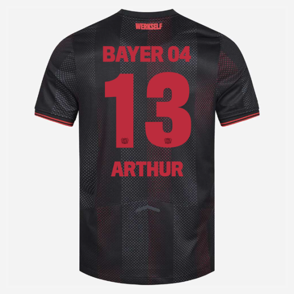 Das Bayer 04-Logo sowie das Logo unseres neuen Ausrüsters New Balance stechen in einer rot gestickten Optik auf der Brust heraus, während unser Brustsponsor BarmeniaGothaer in weißer Schrift hervortritt. Der Nacken wird durch einen roten „Werkself“-Schriftzug geziert, der die Verbundenheit zur Mannschaft unterstreicht.