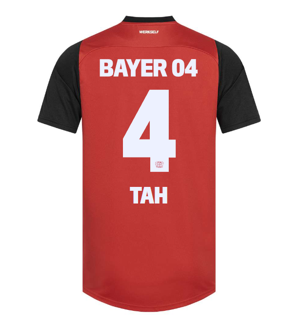 Das neue schwarz-rote Heimtrikot ist da und wird erstmals seit 120 Jahren mit dem goldenen Badge des deutschen Fußball-Meisters auf dem rechten Ärmel geprägt. Das Trikot wird von vielen verschiedenen Elementen der Stadt geziert: die Diamanten des Wasserturms, einem aus den Zacken des Stadtwappens zusammengesetzten Kreuz und die Stadtkarte von Leverkusen.
