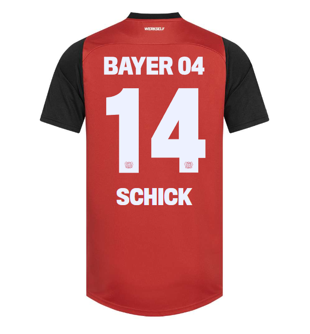 Das neue schwarz-rote Heimtrikot ist da und wird erstmals seit 120 Jahren mit dem goldenen Badge des deutschen Fußball-Meisters auf dem rechten Ärmel geprägt. Das Trikot wird von vielen verschiedenen Elementen der Stadt geziert: die Diamanten des Wasserturms, einem aus den Zacken des Stadtwappens zusammengesetzten Kreuz und die Stadtkarte von Leverkusen.