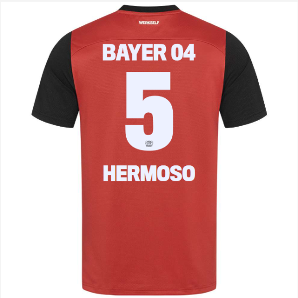 Das neue schwarz-rote Heimtrikot ist da und wird erstmals seit 120 Jahren mit dem goldenen Badge des deutschen Fußball-Meisters auf dem rechten Ärmel geprägt. Das Trikot wird von vielen verschiedenen Elementen der Stadt geziert: die Diamanten des Wasserturms, einem aus den Zacken des Stadtwappens zusammengesetzten Kreuz und die Stadtkarte von Leverkusen.