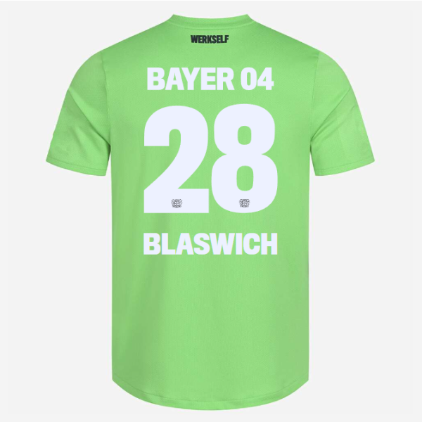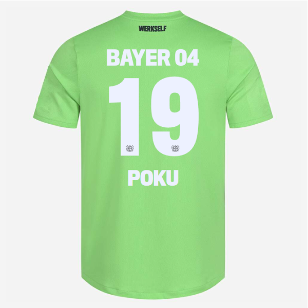 Das Bayer 04-Logo sowie das Logo unseres neuen Ausrüsters New Balance stechen in einer gestickten Optik auf der Brust heraus, während unser Brustsponsor BarmeniaGothaer in weißer Schrift hervortritt. Der Nacken wird durch einen schwarzen „Werkself“-Schriftzug geziert, der die Verbundenheit zur Mannschaft unterstreicht.