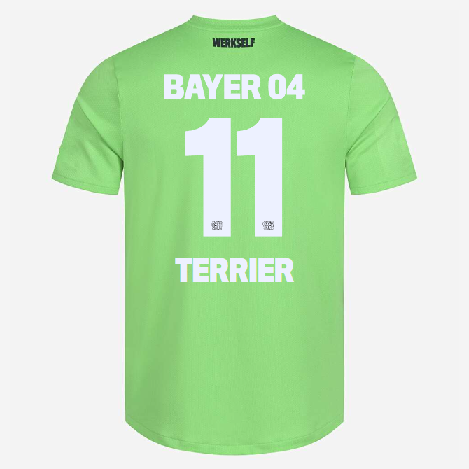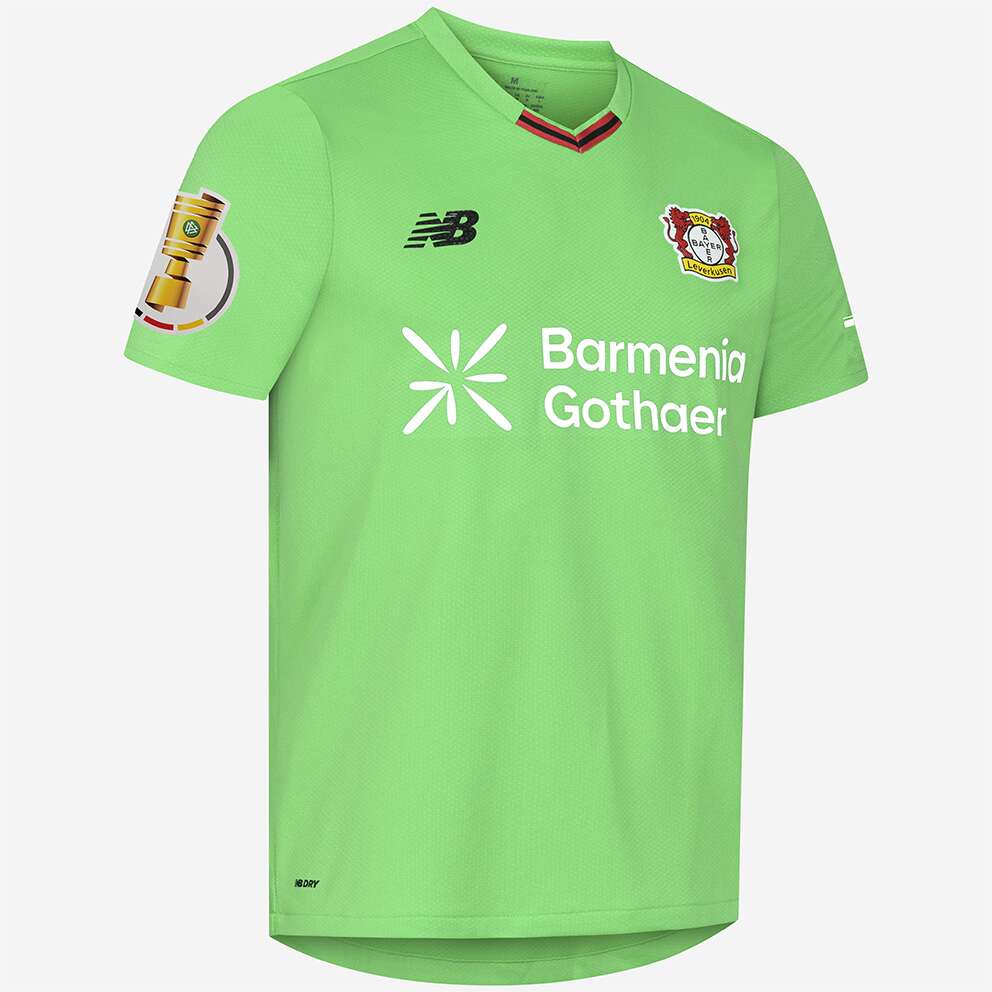 Das Bayer 04-Logo sowie das Logo unseres neuen Ausrüsters New Balance stechen in einer gestickten Optik auf der Brust heraus, während unser Brustsponsor BarmeniaGothaer in weißer Schrift hervortritt. Der Nacken wird durch einen schwarzen „Werkself“-Schriftzug geziert, der die Verbundenheit zur Mannschaft unterstreicht.