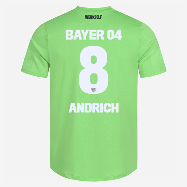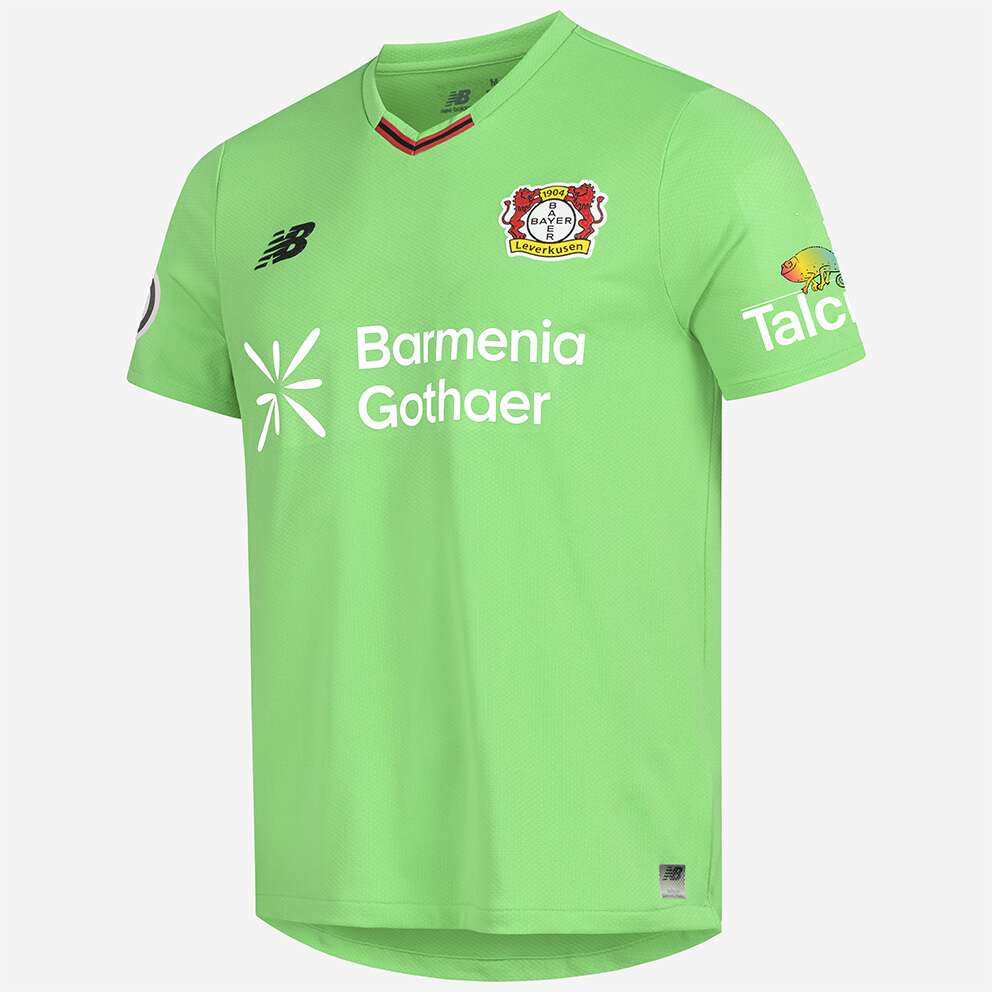 Das Bayer 04-Logo sowie das Logo unseres neuen Ausrüsters New Balance stechen in einer gestickten Optik auf der Brust heraus, während unser Brustsponsor BarmeniaGothaer in weißer Schrift hervortritt. Der Nacken wird durch einen schwarzen „Werkself“-Schriftzug geziert, der die Verbundenheit zur Mannschaft unterstreicht.