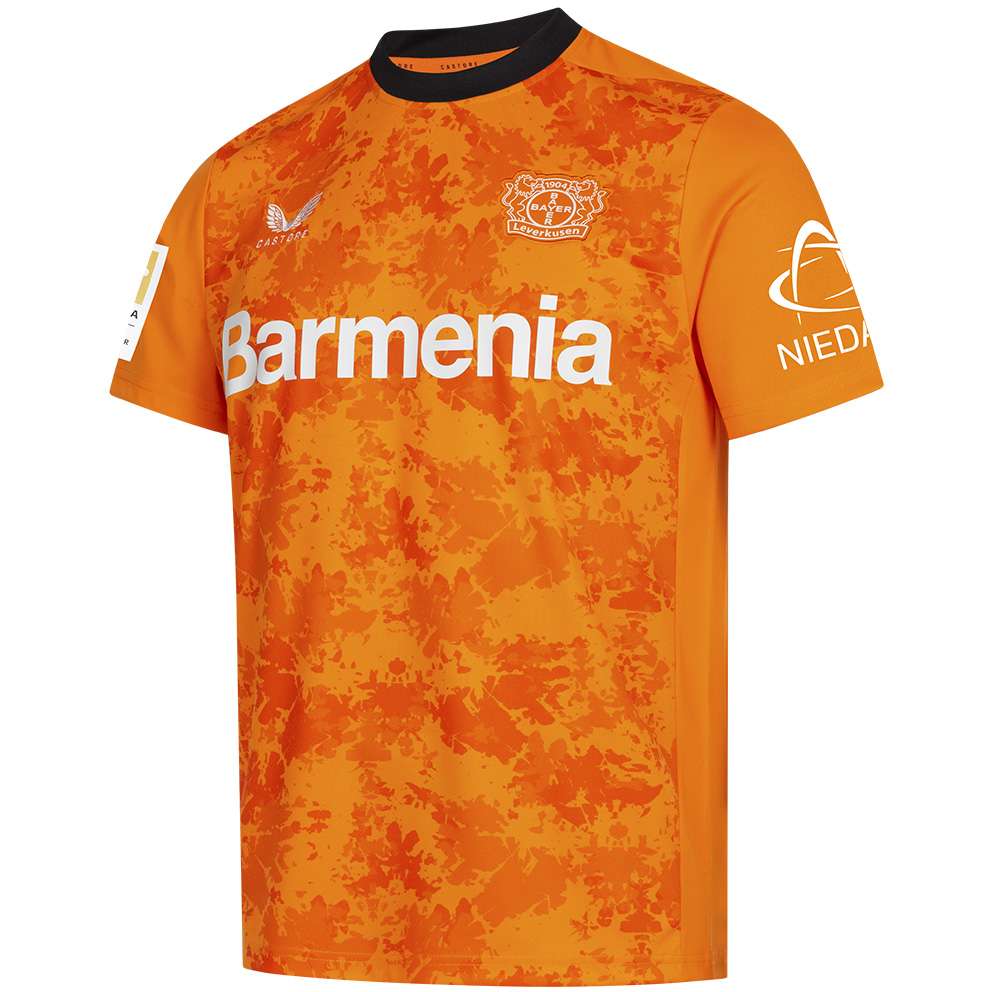 Das orangene Heim-Torwarttrikot ist da und bringt einige Besonderheiten mit sich: Neben dem Bayer 04-Logo in einer orange-weiß gestickten Optik auf der linken Brust, ziert das Shirt ein einzigartiges Muster, welches das Trikot-Design abrundet.