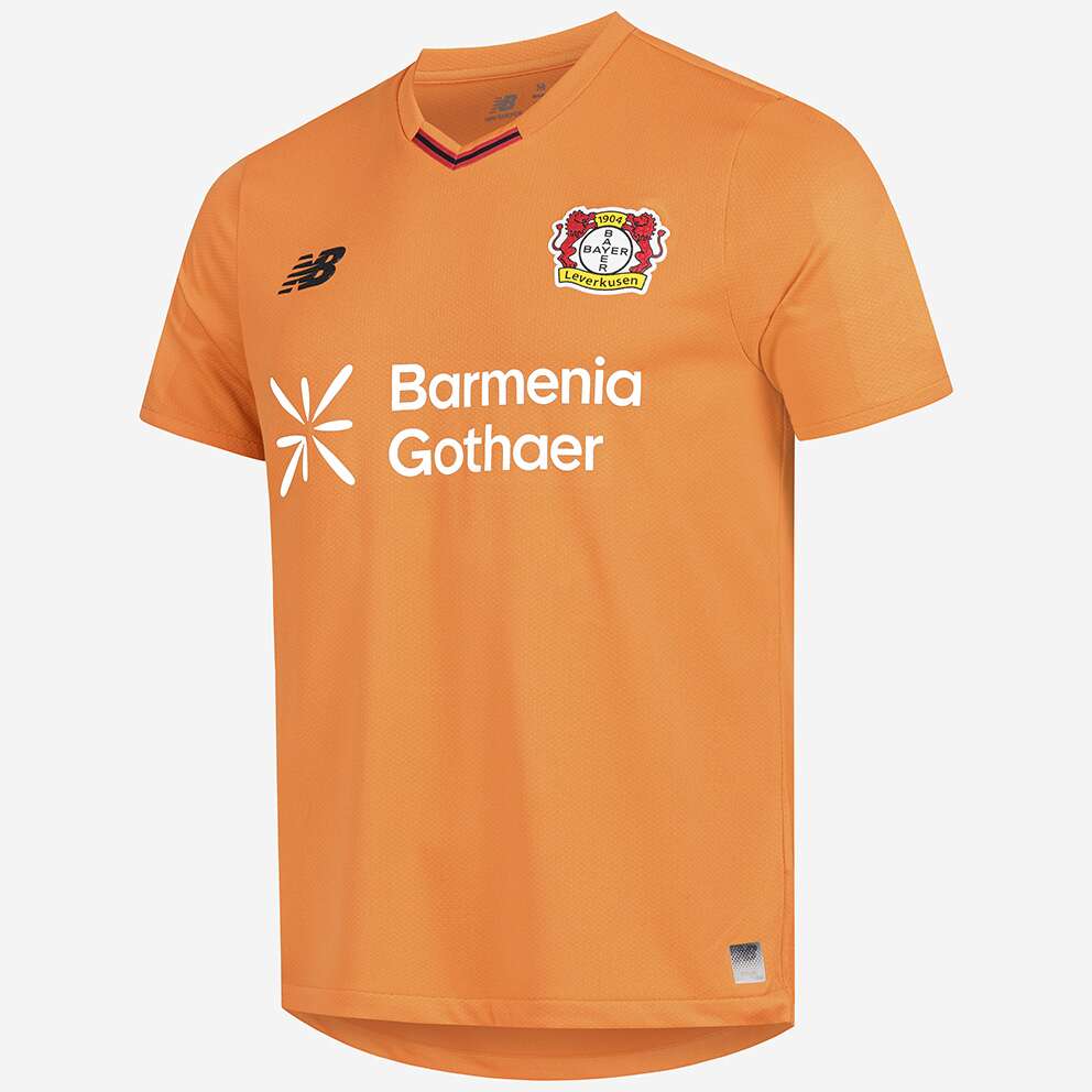 Das Bayer 04-Logo sowie das Logo unseres neuen Ausrüsters New Balance stechen in einer gestickten Optik auf der Brust heraus, während unser Brustsponsor BarmeniaGothaer in weißer Schrift hervortritt. Der Nacken wird durch einen schwarzen „Werkself“-Schriftzug geziert, der die Verbundenheit zur Mannschaft unterstreicht.