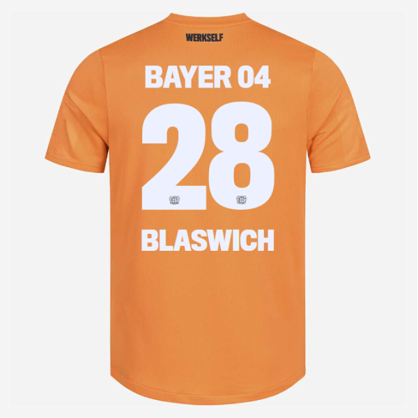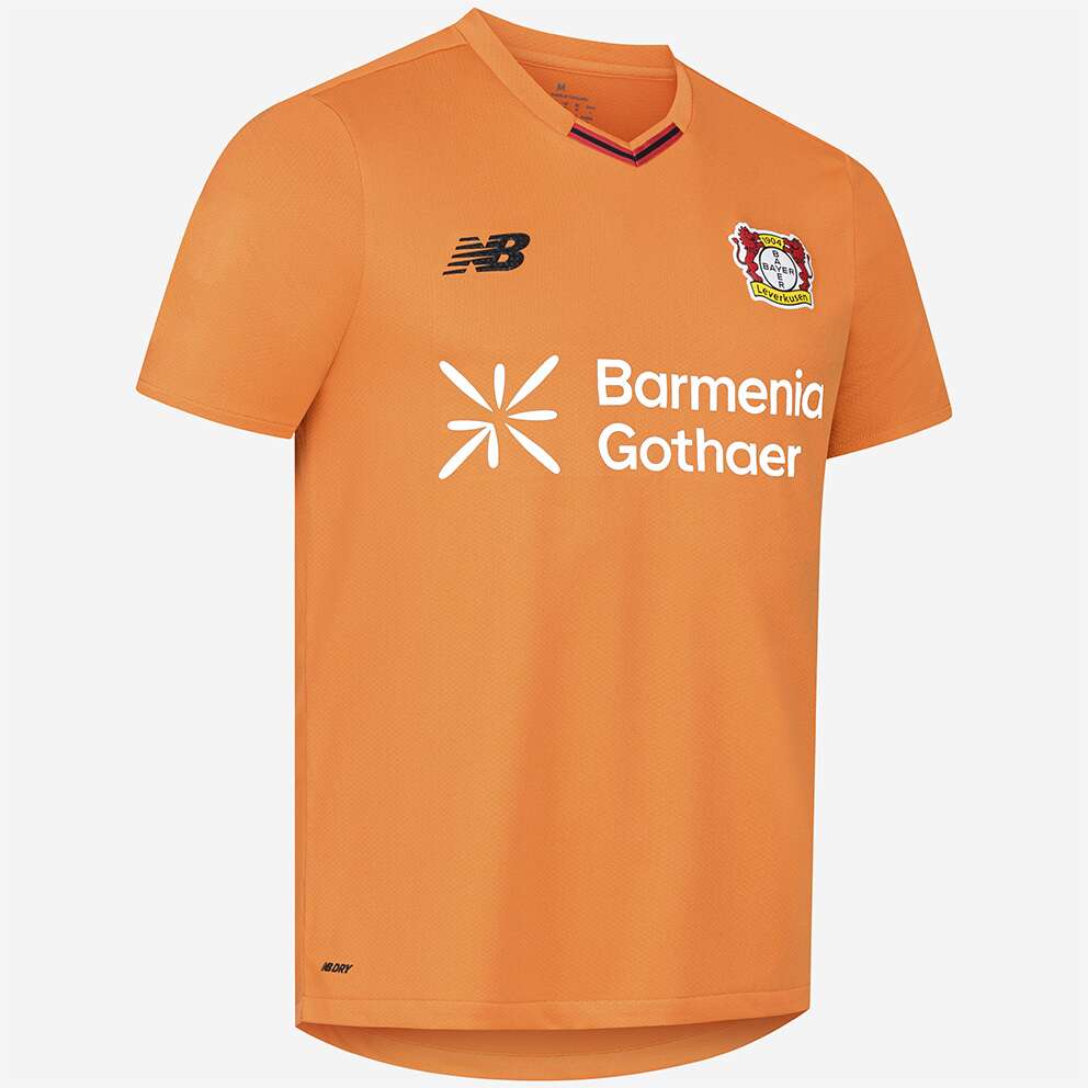 Das Bayer 04-Logo sowie das Logo unseres neuen Ausrüsters New Balance stechen in einer gestickten Optik auf der Brust heraus, während unser Brustsponsor BarmeniaGothaer in weißer Schrift hervortritt. Der Nacken wird durch einen schwarzen „Werkself“-Schriftzug geziert, der die Verbundenheit zur Mannschaft unterstreicht.