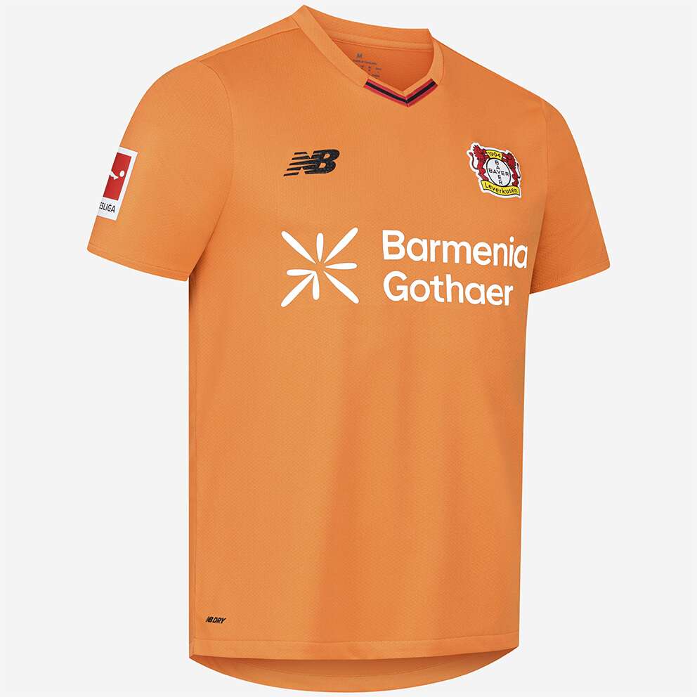 Das Bayer 04-Logo sowie das Logo unseres neuen Ausrüsters New Balance stechen in einer gestickten Optik auf der Brust heraus, während unser Brustsponsor BarmeniaGothaer in weißer Schrift hervortritt. Der Nacken wird durch einen schwarzen „Werkself“-Schriftzug geziert, der die Verbundenheit zur Mannschaft unterstreicht.