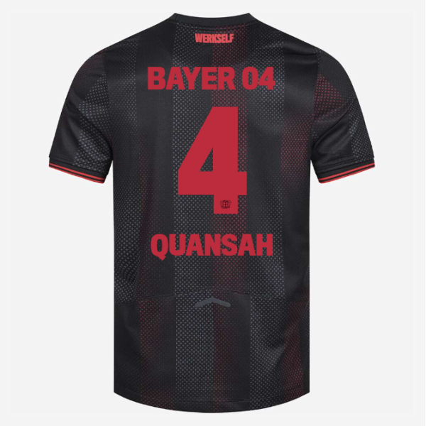 Das Bayer 04-Logo sowie das Logo unseres neuen Ausrüsters New Balance stechen in einer gestickten Optik auf der Brust heraus, während unser Brustsponsor BarmeniaGothaer in weißer Schrift hervortritt. Der Nacken wird durch einen schwarzen „Werkself“-Schriftzug geziert, der die Verbundenheit zur Mannschaft unterstreicht.