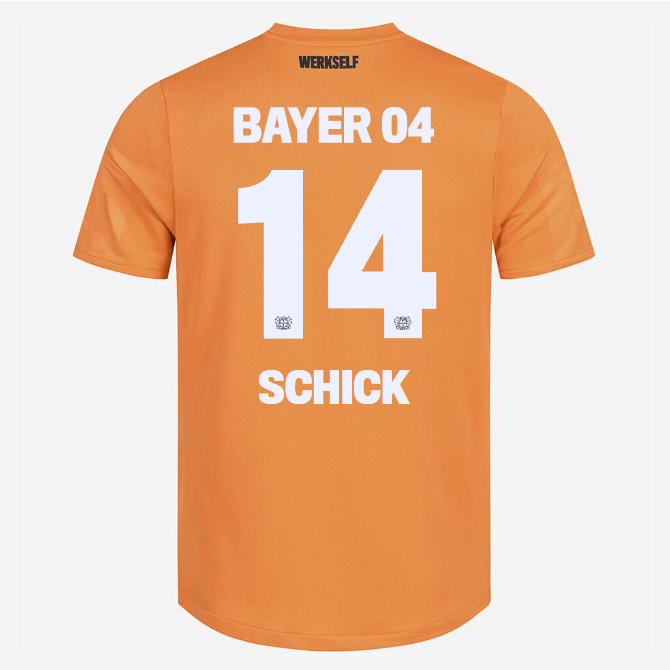 Das Bayer 04-Logo sowie das Logo unseres neuen Ausrüsters New Balance stechen in einer gestickten Optik auf der Brust heraus, während unser Brustsponsor BarmeniaGothaer in weißer Schrift hervortritt. Der Nacken wird durch einen schwarzen „Werkself“-Schriftzug geziert, der die Verbundenheit zur Mannschaft unterstreicht.