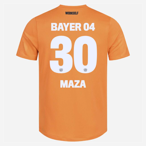 Das Bayer 04-Logo sowie das Logo unseres neuen Ausrüsters New Balance stechen in einer gestickten Optik auf der Brust heraus, während unser Brustsponsor BarmeniaGothaer in weißer Schrift hervortritt. Der Nacken wird durch einen schwarzen „Werkself“-Schriftzug geziert, der die Verbundenheit zur Mannschaft unterstreicht.